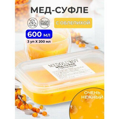 Мед с облепихой, натуральный крем суфле Медолюбов, 600 грамм