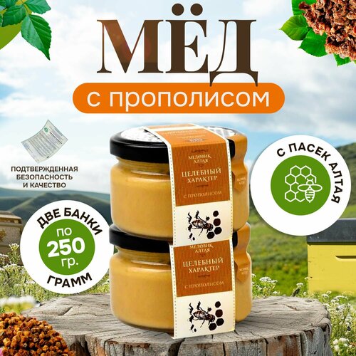 Натуральный мёд с прополисом, 2 банки по 250 г, стекло
