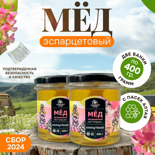 Алтайский натуральный мед "Эспарцетовый" 2 банки по 400 г, стекло