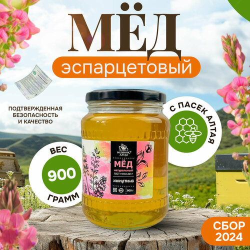 Алтайский натуральный мед "Эспарцетовый" 900 г стеклянная банка, сбор 2024