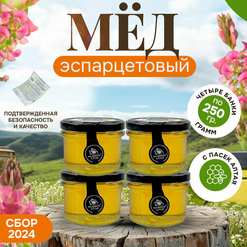 Алтайский натуральный мед "Эспарцетовый" 4 банки по 250 г сбор 2024, стеклянная банка