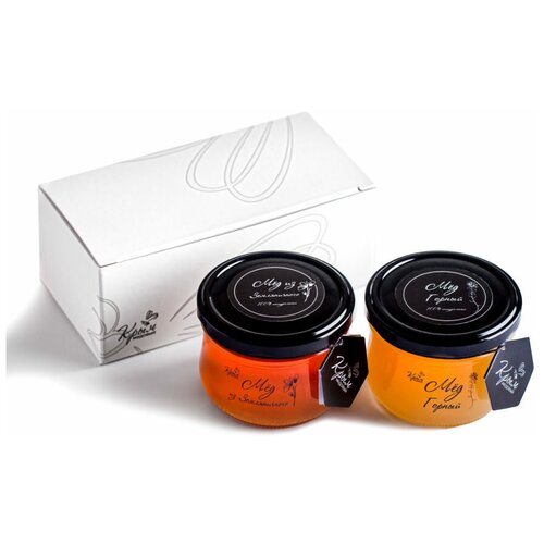Подарочный набор мёда "Сладкая парочка", белый дизайн — Набор №11