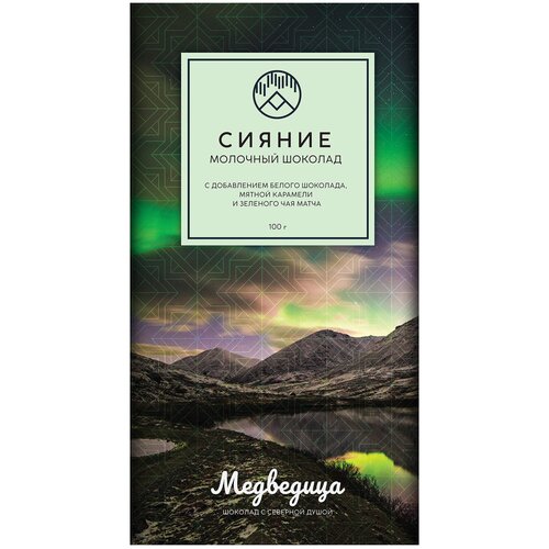 Молочный шоколад с мятной карамелью, белым шоколадом и чаем матча "Сияние", 100 г