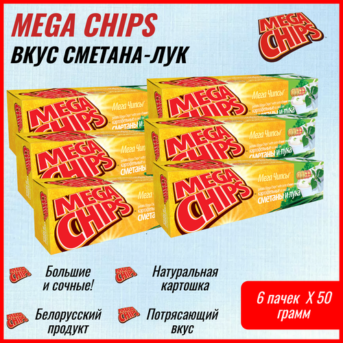 Мегачипсы картофельные Mega Chips со вкусом Сметана и Лук, 6 штук по 50 г