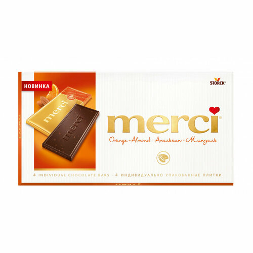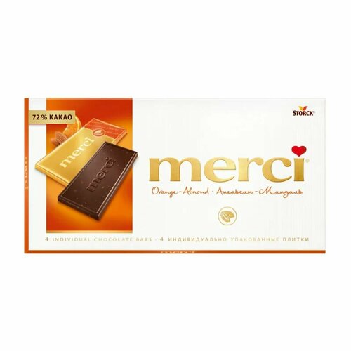 Шоколад "Merci" горький, апельсин-миндаль 100г 4шт