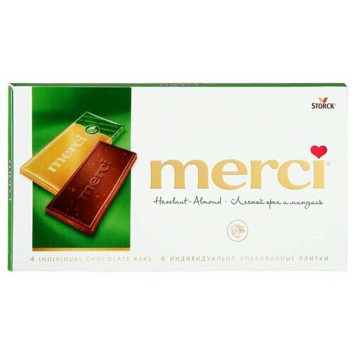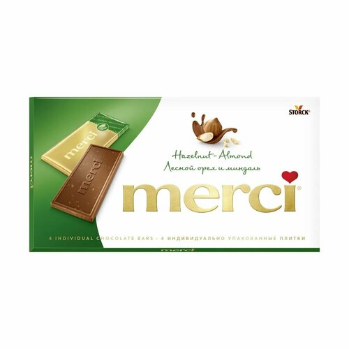 Шоколад MERCI Лесной орех и миндаль, 112г, Германия, х 3шт