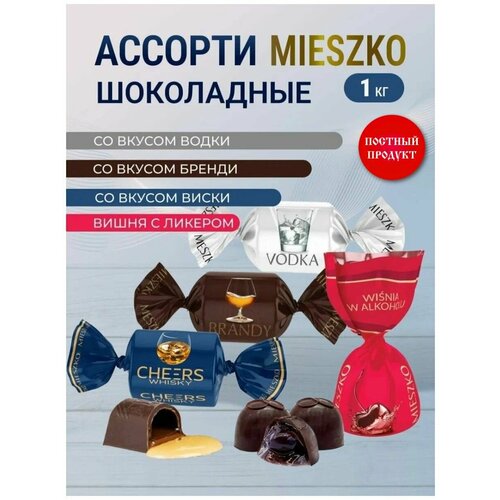 Ассорти шоколадных конфет Водка, Виски, Бренди, Вишня в ликере 1кг