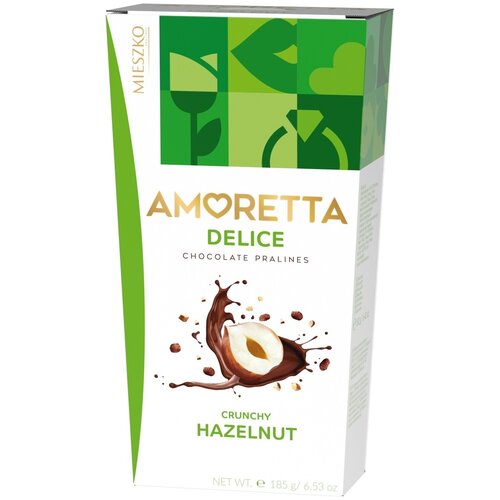 Конфеты MIESZKO "Аморетта" с цельным орехом, "AMORETTA HAZELNUT SHARING", 185г.