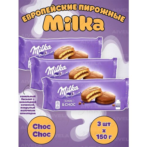 Milka Choc Choc набор бисквиты Милка в шоколаде пирожные 150г х 3 шт