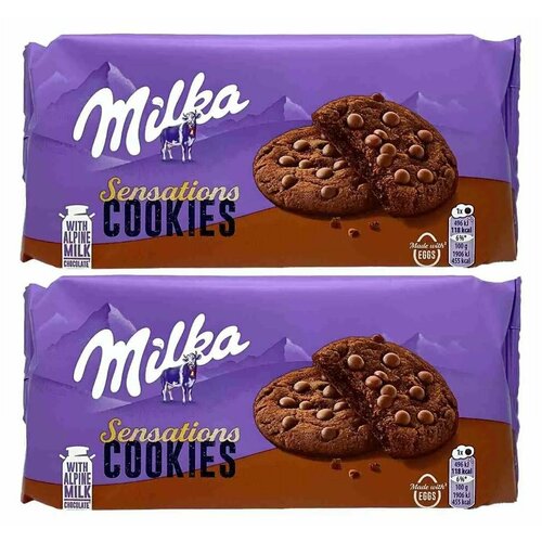 Печенье Milka Cookie Sensations с какао и кусочками молочного шоколада, 2 шт. по 156 гр. (Швейцария)
