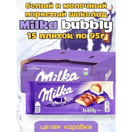 Шоколад Milka Bubbly White/ Милка Бабл Вайт/ Набор европейского шоколада 15 плиток по 95гр короб