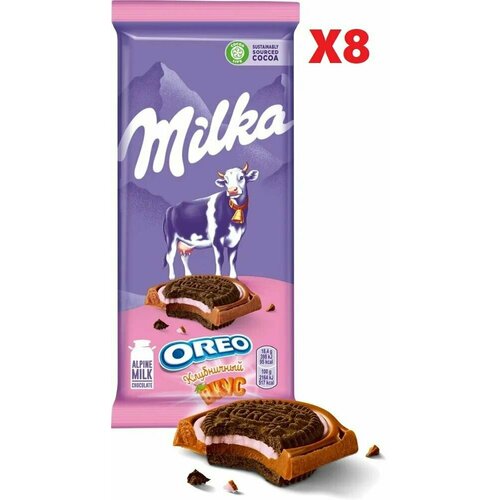 Шоколад Milka с круглым печеньем Oreo с начинкой со вкусом клубники 92 г 8 шт