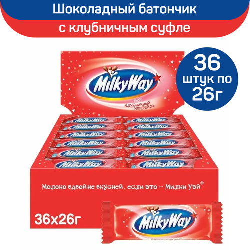 Шоколадный батончик Milky Way Клубничный коктейль с суфле, 36 шт по 26 г