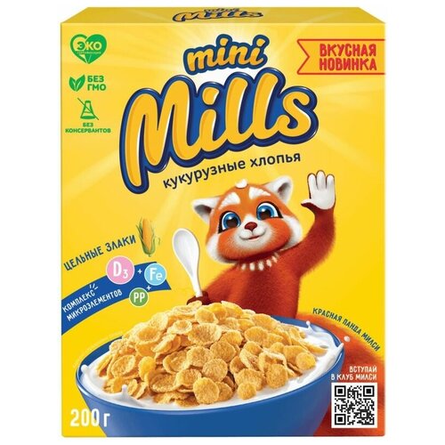 Хлопья кукурузные Mini Mills, обогащенные витаминами и железом 200г