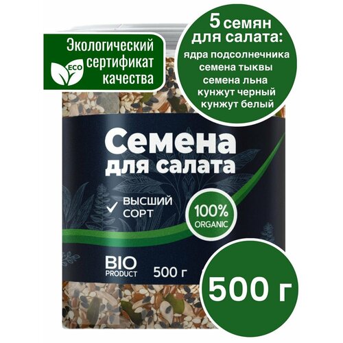 Смесь из 5 семян для салата BIO 500 г, семечки для салата, семена льна, семечки тыквы, семечки подсолнечника, кунжут черный, кунжут белый.