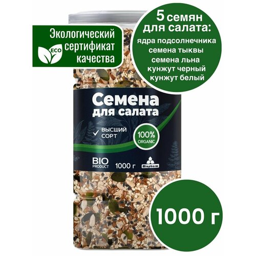 Смесь из 5 семян для салата BIO 1000 г, семечки для салата, семена льна, семечки тыквы, семечки подсолнечника, кунжут черный, кунжут белый.
