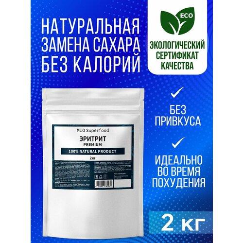 Сахарозаменитель Эритрит, заменитель сахара, Miosuperfood натуральный столовый подсластитель 2000 г, эритритол, ПП, диетические продукты.