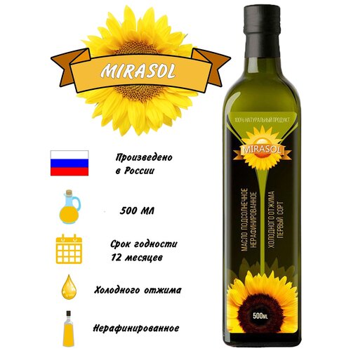 Упаковка из 6 шт, подсолнечное масло холодного отжима, собственного производства "Мирасол" обьем одной бутылки 500 мл