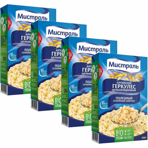 Хлопья Мистраль Геркулес Алтайский цельнозерновой, 400 г * 4 шт