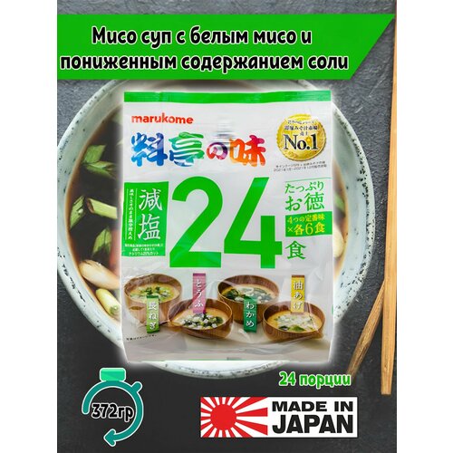 Мисо суп ассорти быстрого приготовления с белой пастой и пониженным содержанием соли Marukome 372 гр, 24 порции, Япония