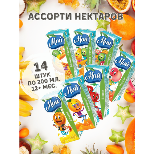Нектар "МОЙ" ассорти, для детского питания, 14 штук по 200 мл.