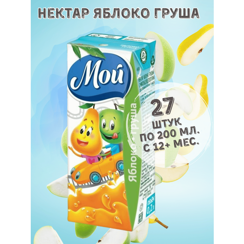 Нектар детский МОЙ яблоко-груша с 12+ мес, 27 штук по 200 мл.