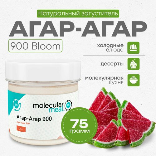 Агар агар 900 bloom 75 г, натуральный пищевой загуститель, растительный желатин для выпечки, десертов, варенья, кондитерских изделий (зефир, мармелад, желе)
