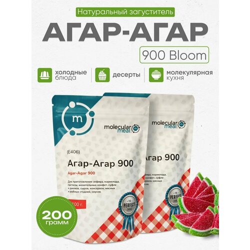 Агар агар 900 bloom 200 г, натуральный пищевой загуститель для выпечки, десертов, варенья, кондитерских изделий (зефир мармелад желе) пакет