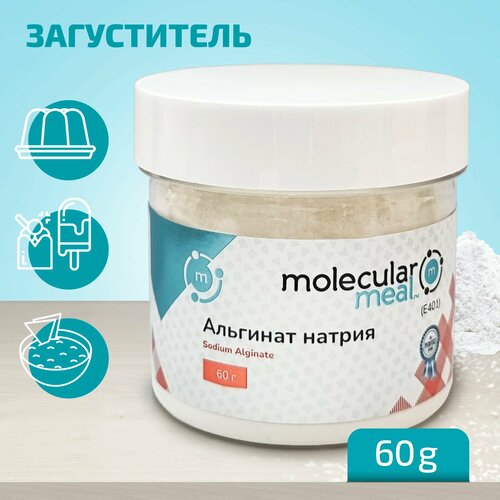 Альгинат натрия пищевой 60 гр. кондитерский, загуститель, стабилизатор, вязкость 1000, для выпечки, безопасная пищевая добавка Е401, в порошке (натриевая соль альгиновой кислоты)
