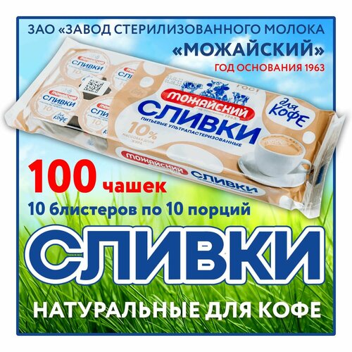 Сливки натуральные по ГОСТ (100 шт.) — порционные для кофе 10%, бзмж