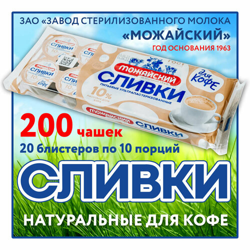 Сливки натуральные по ГОСТ (200 шт.) — порционные для кофе 10%, бзмж