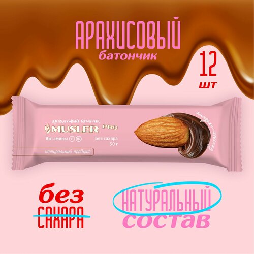 Ореховые батончики без сахара Musler PRO "Арахис" 60г (12шт)