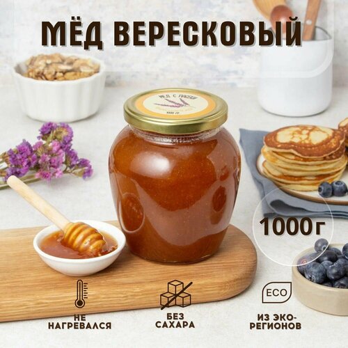 Мед натуральный Вересковый 1 кг 2022 г. сбора, в стеклянной банке