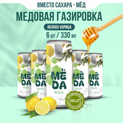 Газированный Натуральный Лимонад Мёда без сахара Тоник 6х0,33л