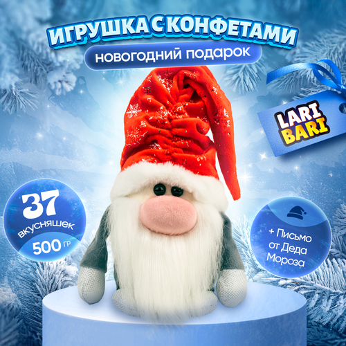 Новогодний подарок сладкий "Гном Бородач" 500гр Игрушка с конфетами