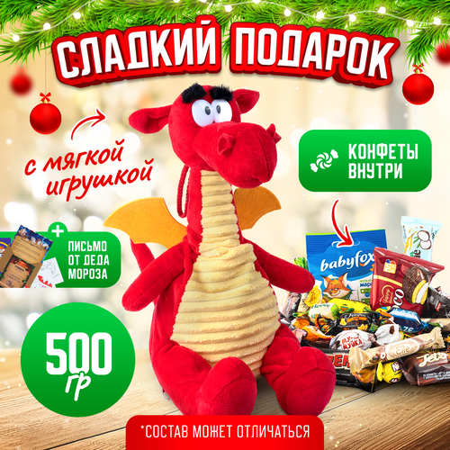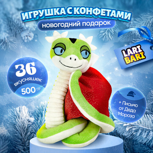 Сладкий новогодний подарок Змея Вишенка с конфетами 500гр