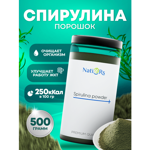Спирулина порошок Natiors, водоросли, суперфуд, банка 500 гр