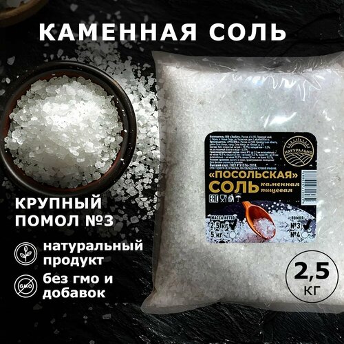 Соль пищевая каменная крупный помол № 3, Посольская, 2,5 кг
