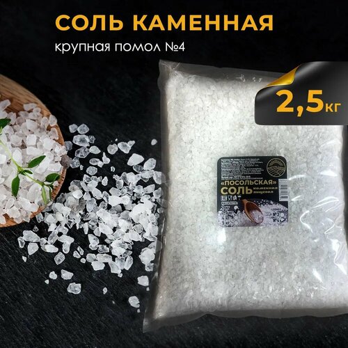 Соль пищевая каменная, крупный помол №4, Посольская, 2,5 кг