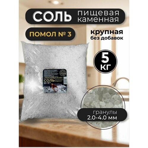 Соль пищевая каменная крупный помол № 3, Посольская, 5 кг