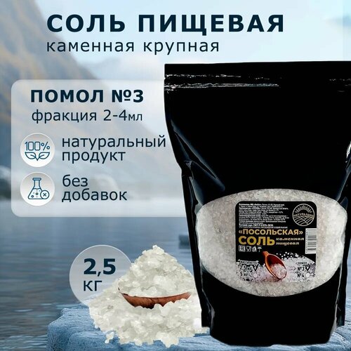 Соль пищевая каменная крупный помол № 3, Посольская, 2,5 кг дой-пак