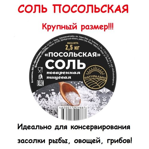 Соль крупная для засолки пищевая Посольская помол №3 2,5 кг для консервирования выварочная