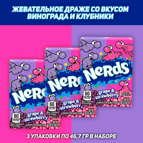 Конфеты — драже Nerds, со вкусами винограда и клубники, 46,7 гр, 3 шт