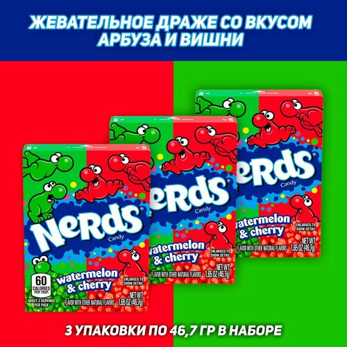 Конфеты — драже Nerds, со вкусами арбуза и вишни, 46,7 гр, 3 шт