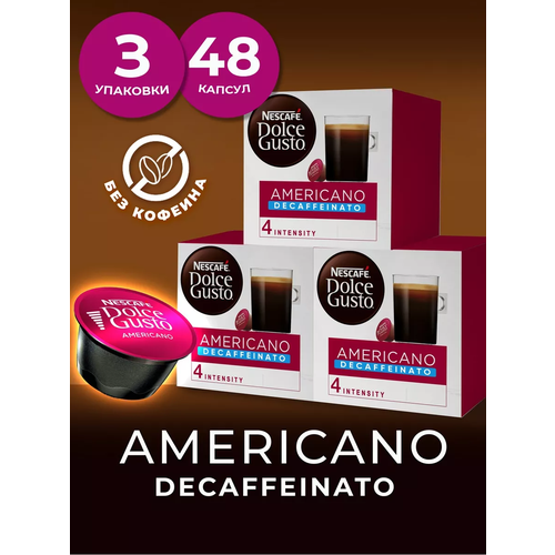 Кофе в капсулах Nescafe Dolce Gusto Americano Decaffeinato, 48 капсул (3 уп х 16 шт), без кофеина