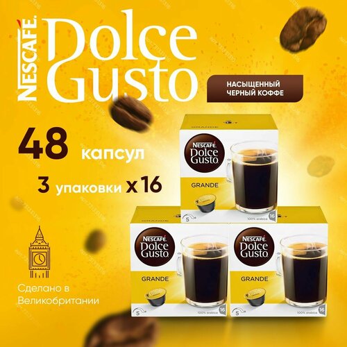 Кофе в капсулах Nescafe Dolce Gusto Grande, 48 порций для капсульной кофемашины, подарочный набор 3 упаковки по 16 шт