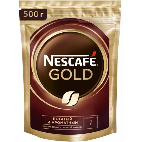 Кофе растворимый Nescafe Gold сублимированный с добавлением натурального жаренного молотого кофе, пакет, 500 г