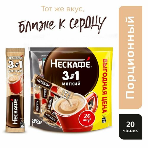 Кофе растворимый, Нескафе 3 в 1 "Мягкий", в стиках, 20 порций