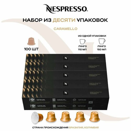 Кофе в капсулах Nespresso Caramello с ароматом карамели комплект из 10 упаковок