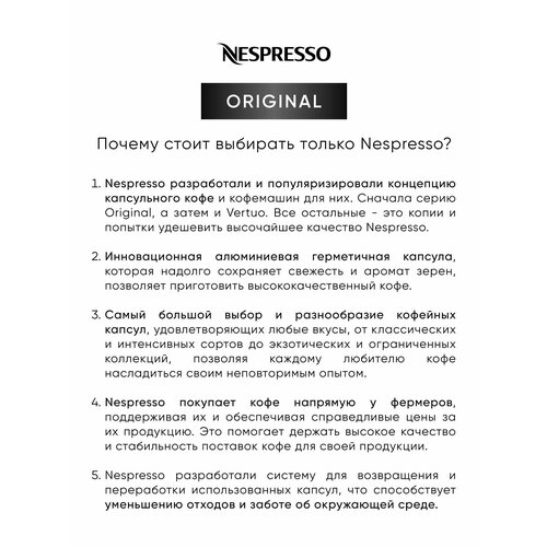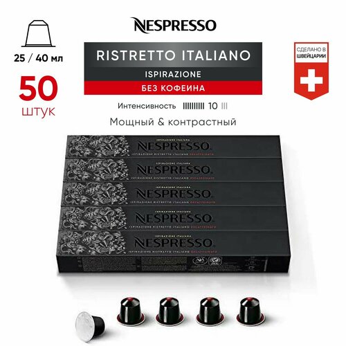 Ristretto Italiano Decaffeinato — кофе в капсулах Nespresso Original, 5 упаковок (50 капсул)